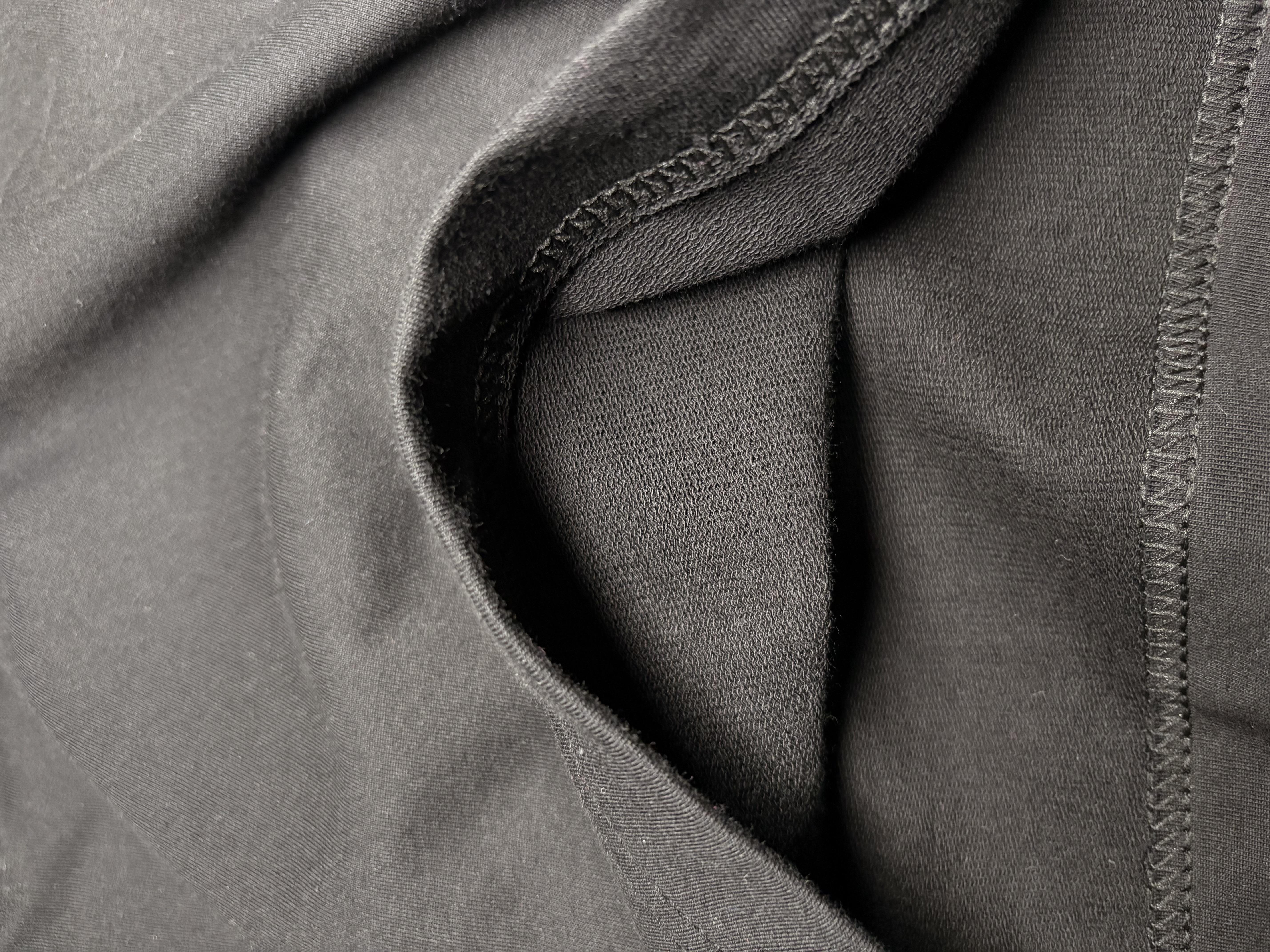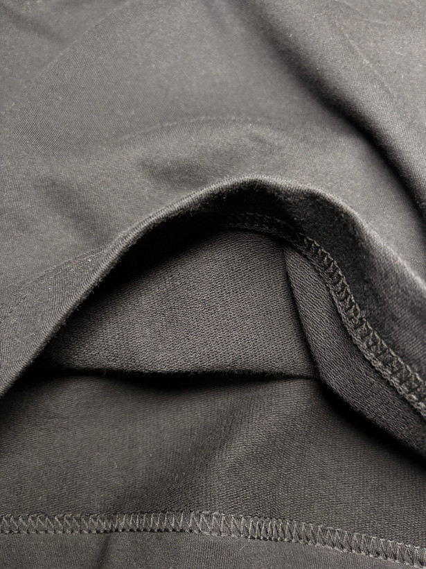 رنگ مشکی لباس باعث شده طرح سفید روی سینه کاملاً برجسته و چشمگیر دیده شود. مناسب برای استایلهای روزمره و کژوال.